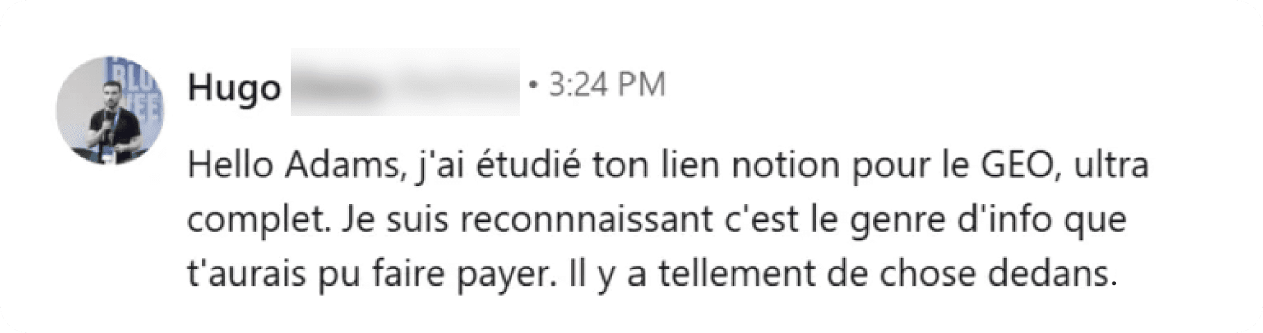 "On pensait qu'un bon SEO suffisait pour apparaître dans ChatGPT mais ce n'est pas le cas. Avec les optimisations techniques recommandées, on a vu la différence en 3 semaines."